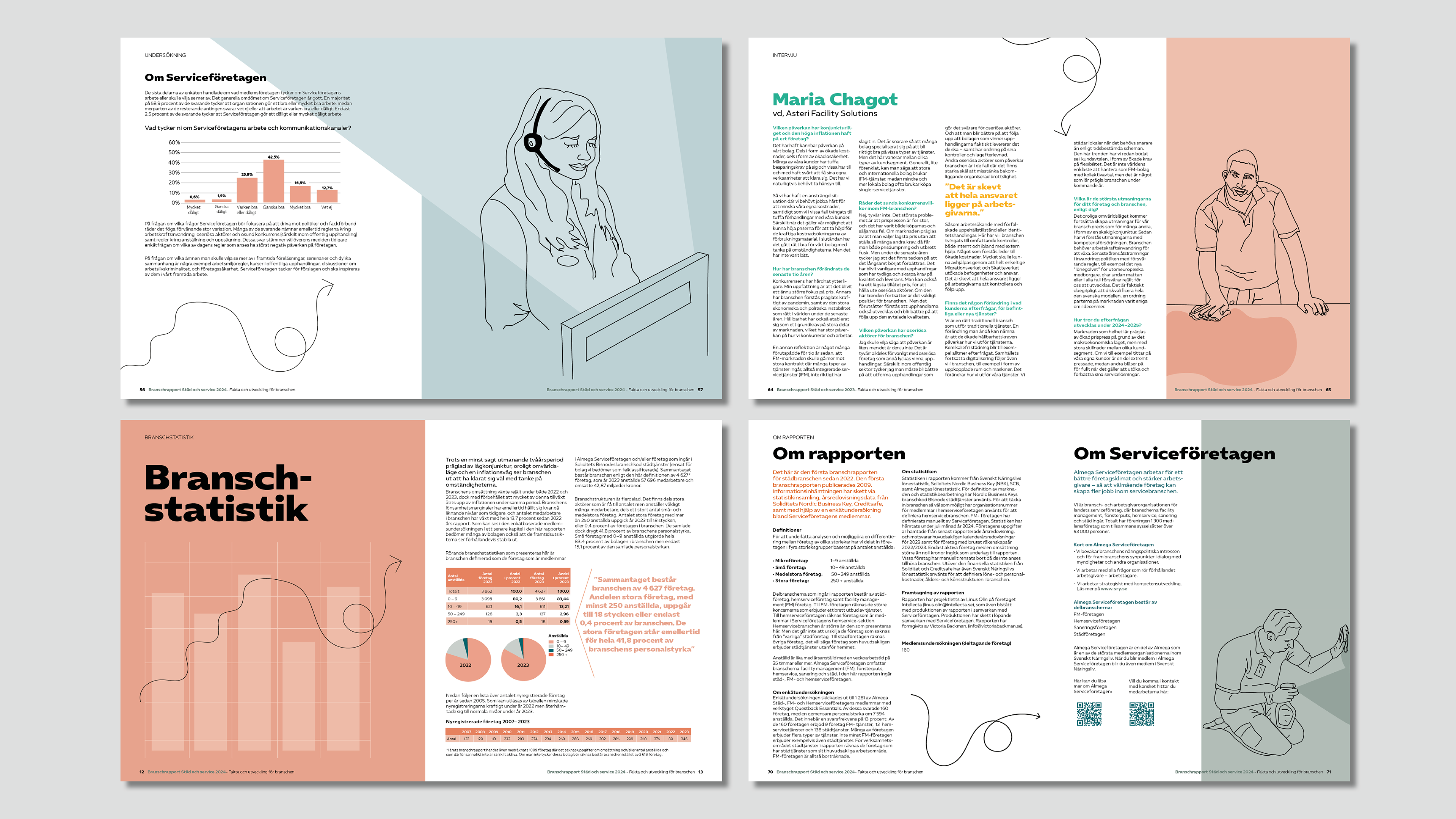 Design och illustration för Almegas branschrapport. Både digital och print.