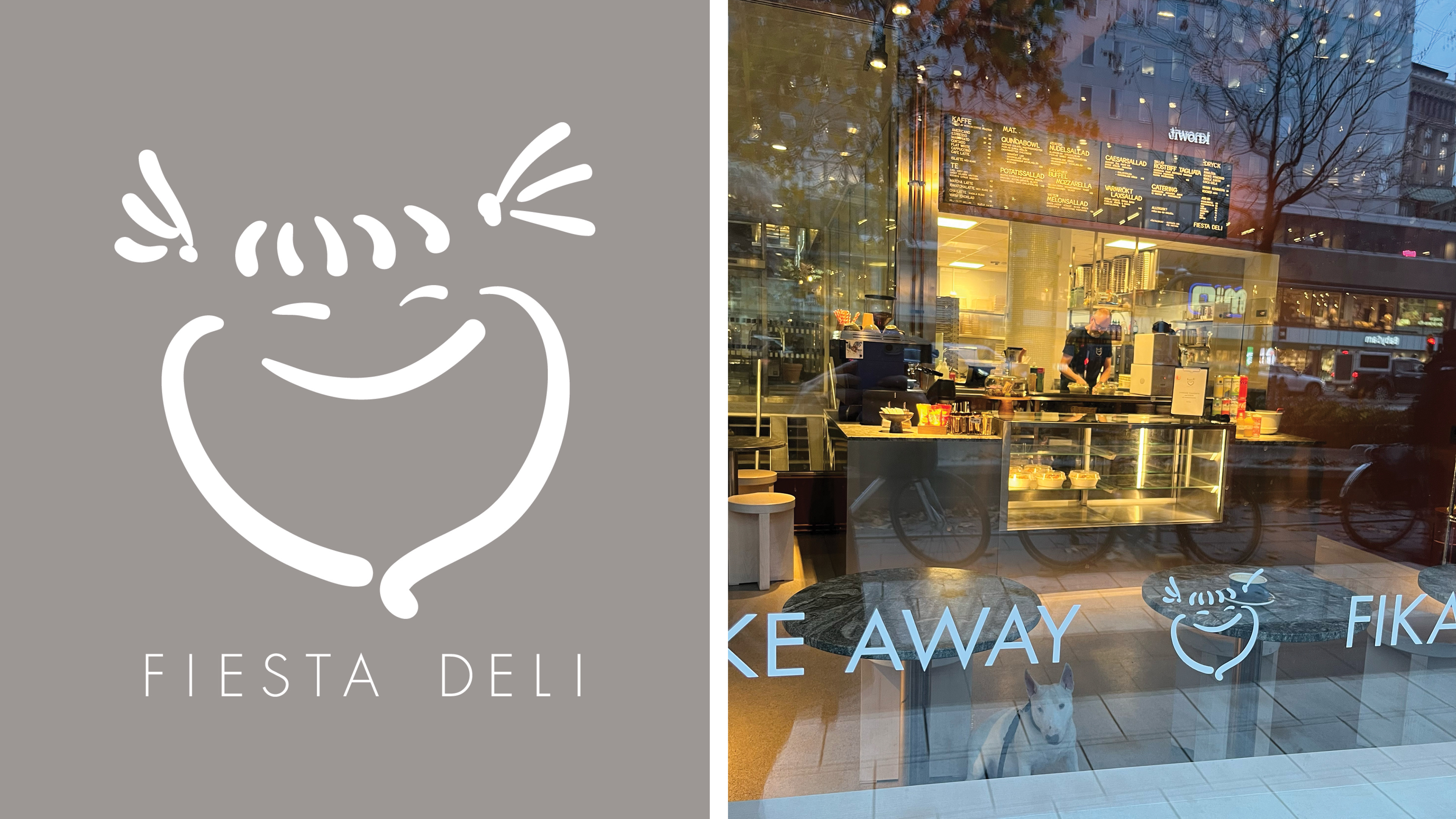 Logotyp och grafisk profil för Fiesta deli. Illustrationer, skyltsystem och etiketter.